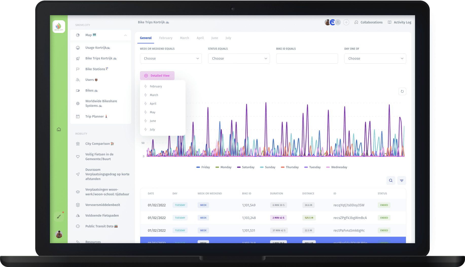 The SMOVECITY Mobility Data Platform allows cities to analyse and visualise mobility data inside one platform by integrating relevant historical and real time data. Optimizing public transport infrastructure, such as bikes, buses, trains, & metro services, is key in order to reduce traffic & improve road safety. A dashboard that gives a complete overview of trips, vehicles and more. Use analytics to optimize and understand the way bikes are used in your city. Reach out for a demo. Use our mobility data to understand where your city should implement car-free areas and speed limitations. Use the data to create more effective and longterm (mobility) policies. Create generational change using data. Use our platform to create the future you want for the next generations. Reach out for a demo. Optimizing public transport infrastructure, such as bikes, buses, trains, & metro services, is paramount in order to reduce traffic & improve road safety. Understand mobility patterns in your city, from shared mobility to people movements. Request a demo. We are here to answer any question you may have. We’re interested in Visit our headquarters 81, Griva Digeni Avenue, 6043 Larnaca, Cyprus Have a project in mind? contact(at)smove.city Would you like to join contact(at)smove.city SMOVE.CITY PLATFORM